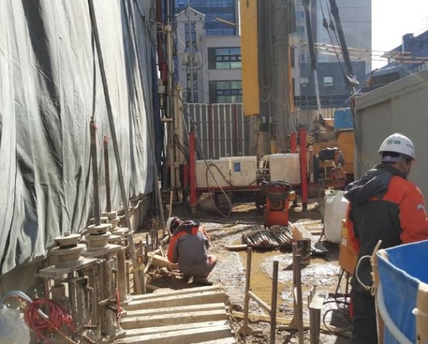잠실 아주리센 센트럴파크 2017년 3월 공사진행 현황 관련링크 http://www.ajurisen.com/bbs/board.php?bo_table=ing&wr_id=6 이전글 다음글 목록 본문 2017년 3월 좌측면 CIP 천공 및 철근망 근입, POST PILE 천공(복공) 및 근입, SGR 차수공사 천공 및 그라우팅 작업 현황. (사진첨부) 이전글 다음글 목록